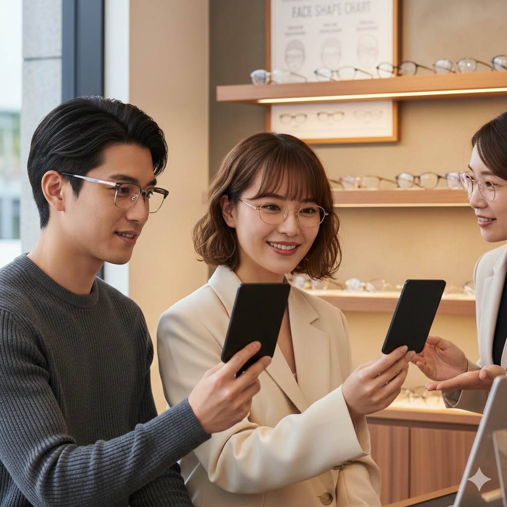 ※本記事で紹介した顔型診断や効果は一般的な目安です。骨格には個人差がありますので、最終的な判断は眼鏡店でプロのスタッフに相談し、実際に試着してみることを強くおすすめします。