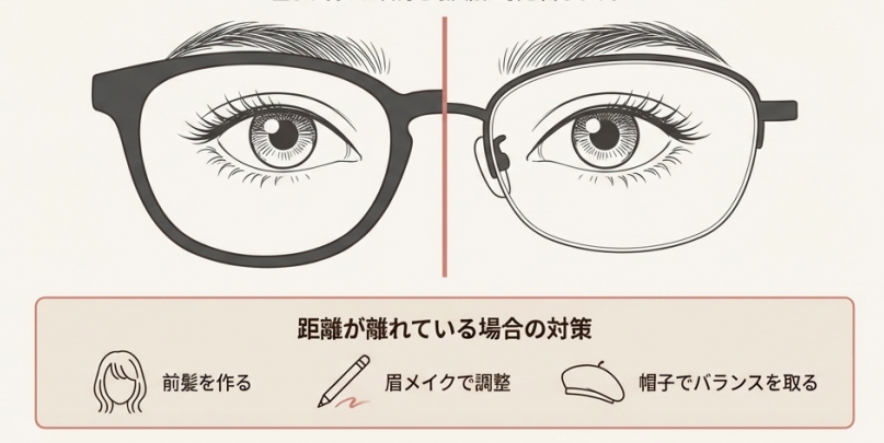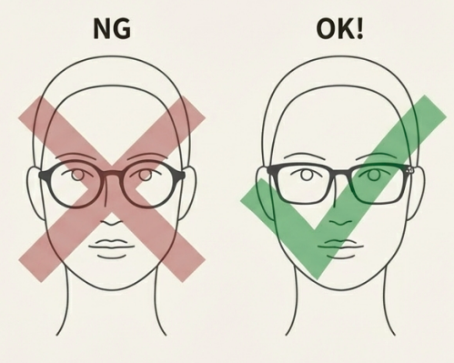 - 横幅: 顔幅と同じくらいの幅を選ぶ。顔より広いと目が寄って見える原因に。