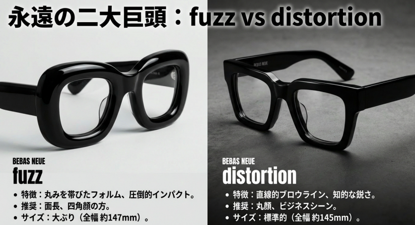 パッと見は似ているため「どっちを選べばいいの?」と悩む方が非常に多いのですが、掛けたときの印象やターゲットとなる顔型は大きく異なります。失敗しないために、詳細な比較表を作成しました。