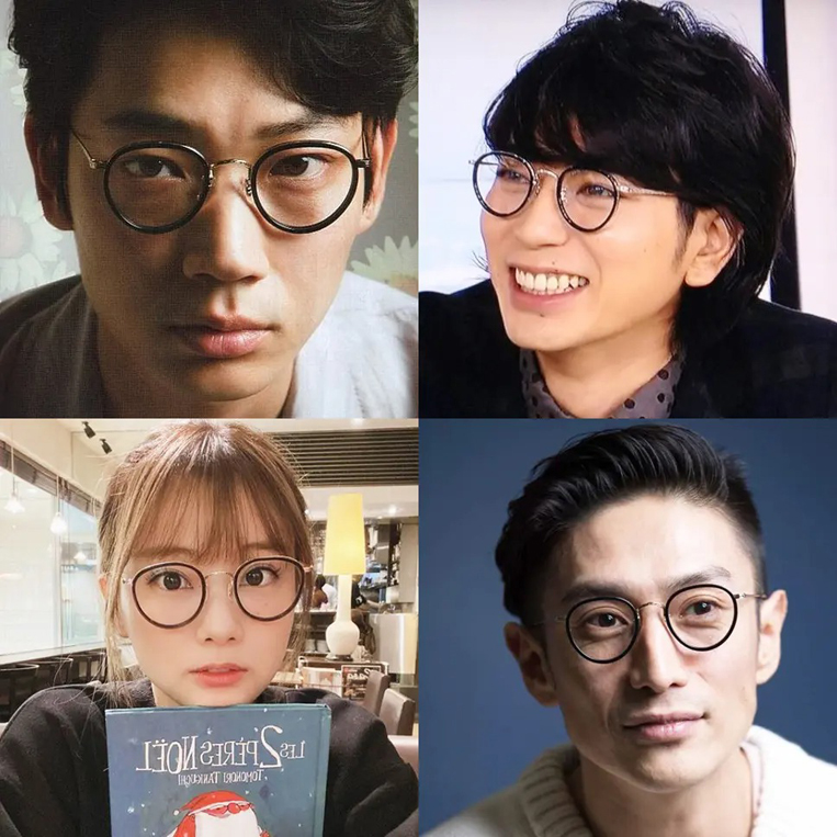 - 菅田将暉さん(Coleridge):真円に近いラウンドや、個性的なブリッジのメタルフレームを恐れずに着用。古着ファッションと合わせることで、時代を超えた個性を表現しています。あえて少し小さめのサイズ感で掛けるのもテクニックの一つです。