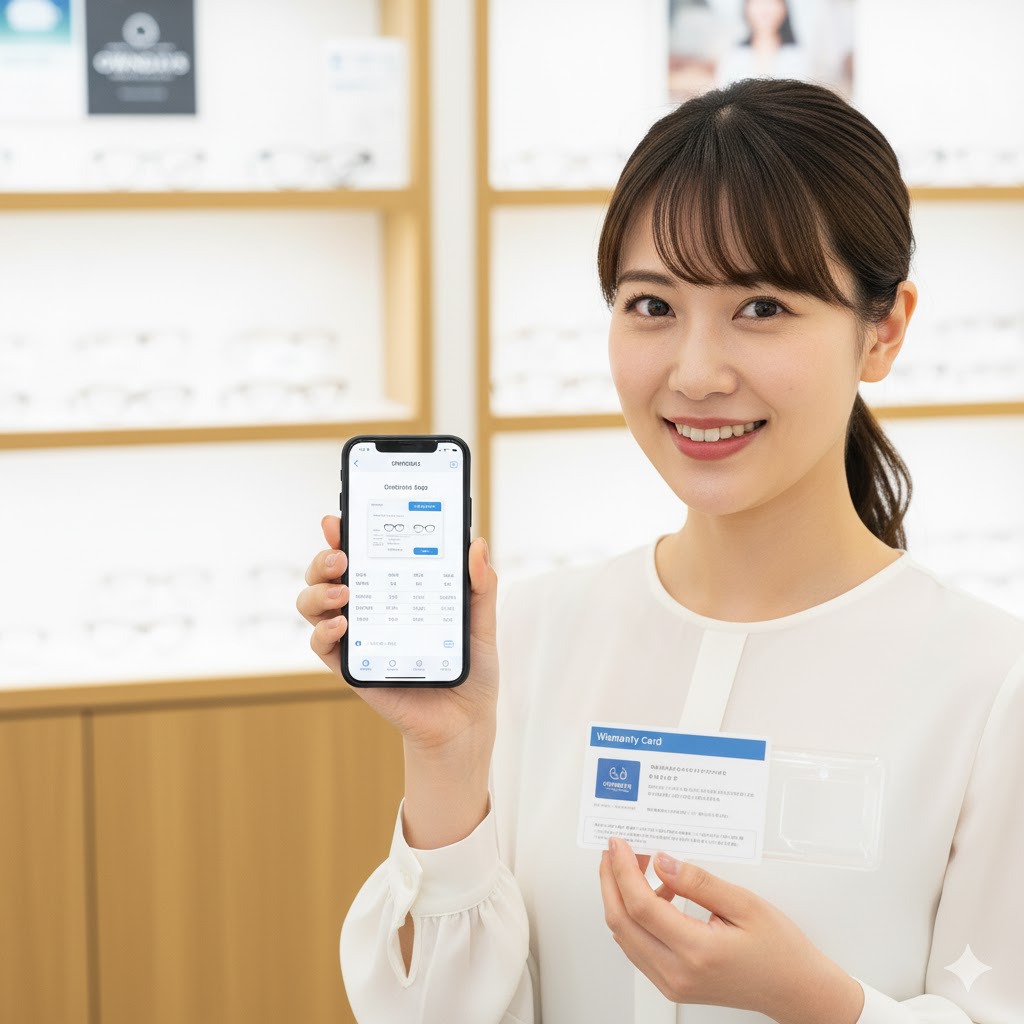 最大のメリットは、購入したメガネの保証書や視力測定で得られた度数情報を、すべてアプリ内で電子的に一元管理できる点です。