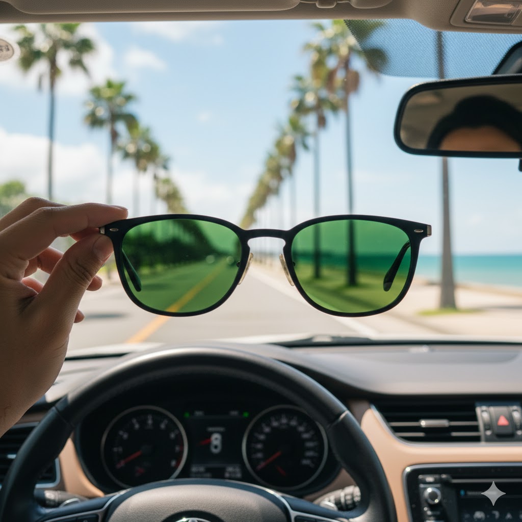 でも、結論から言うと、グリーンレンズがダサいというのは大きな誤解です。実は、その「クラシックさ」こそが最大の魅力であり、選び方や合わせ方次第で、他の色にはない洗練されたスタイルを作れるんです。また、グリーンレンズは見た目だけでなく、目の疲れを抑える効果や、運転時に最適な自然な見え方を提供してくれる、機能的にも非常に優れたレンズカラーなんですよ。濃度が薄い色のレンズを選べば、印象もガラッと変わります。