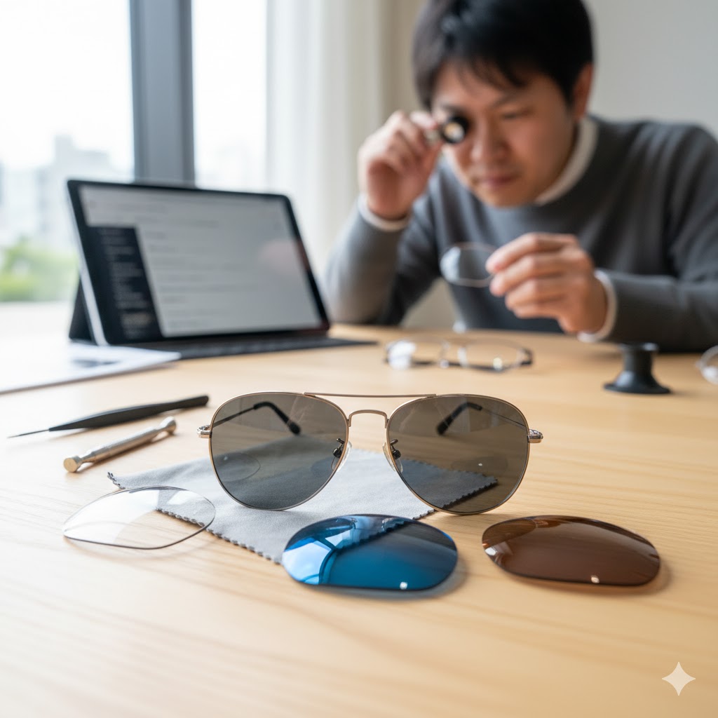 さらに、持ち込むフレームがもしオークリーのような特殊なものだったら? 万が一、作業中に大切なフレームが破損したら、保証はどうなるのか? 不安は尽きません。この記事では、そんな「サングラスのレンズ交換、持ち込みで安いのはどこ?」というあなたの疑問を、価格のカラクリからリスク管理まで、徹底的に比較して解き明かしていきます。