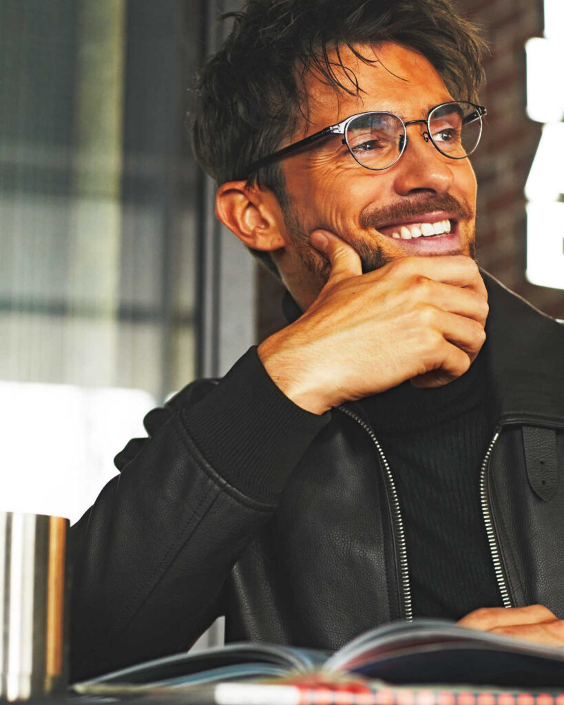 オフの日は、ファッションアイテムとしてメガネを存分に楽しみましょう。「抜け感」や「遊び心」を取り入れるのがコツです。