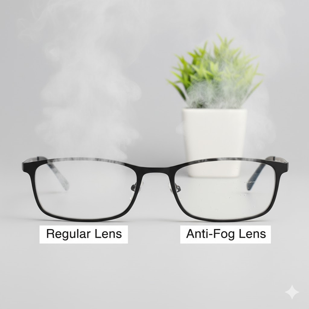 マスクを着用するたびにスプレーを吹いたり、ティッシュを挟んだりする…そんな日々のわずらわしい手間から完全に解放されたい場合、レンズ自体を曇りにくくする「くもり止めレンズ(防曇レンズ)」が最強の根本解決策となります。