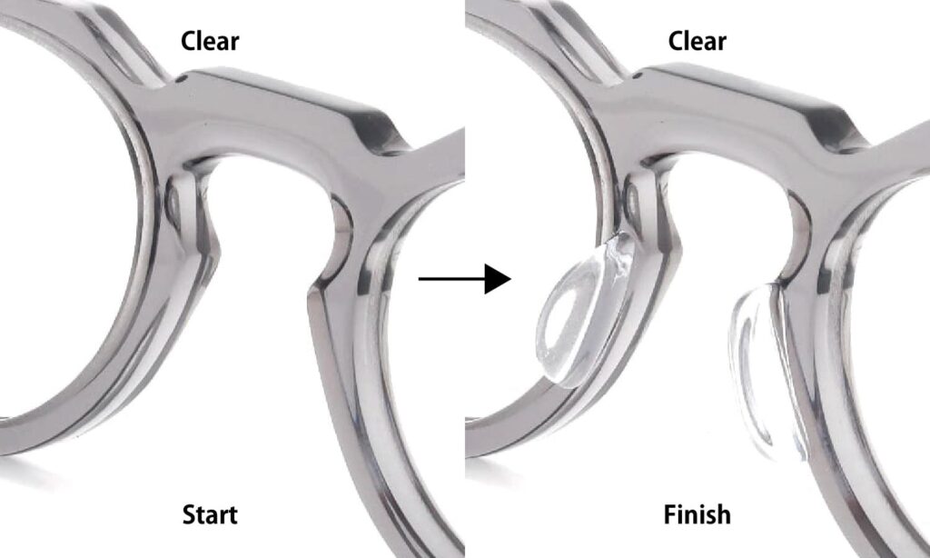 • 鼻盛り加工(貼り付け): 元々の低い鼻パッドを削り取り、高く厚みのあるアジアンフィットのパッドを溶着する方法。見た目を大きく変えずにフィット感を向上させられます。