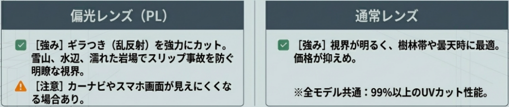 偏光レンズと通常レンズどちらを選ぶか