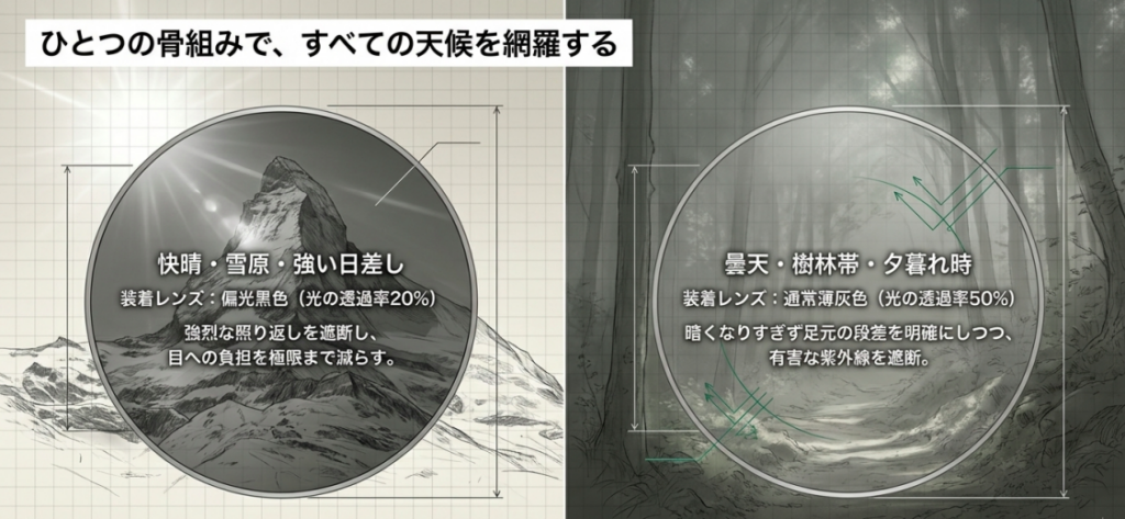 | 適したシーン | 雪山・水辺・岩場・快晴 | 樹林帯・曇天・光量少なめ |