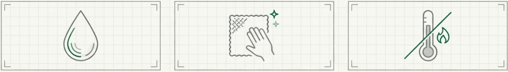 - 水洗い:使用後は中性洗剤を薄めた液か真水で表面の汚れを洗い流し、柔らかい布で水分を拭き取る