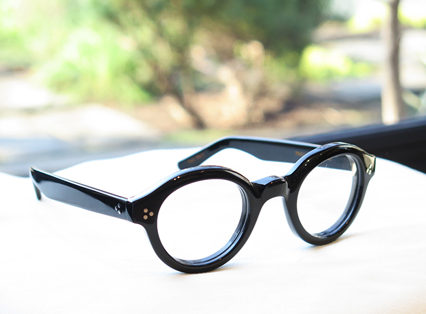 真円に近い肉厚なアセテートフレームはインパクト絶大で、掛けるだけで顔の印象をガラリと変えてしまう「変身願望」を満たしてくれる一本と言えます。