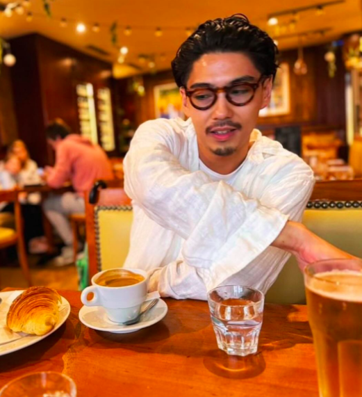 ビジネスシーンでも使えるけれど、堅苦しくなりすぎない「一歩先のおしゃれ」を目指すなら、彼のようなスタイルを参考に、黒縁のラウンドフレーム(モデルで言うと「Burt」や「G.Burt」あたり)を探してみるのも良い選択かなと思います。