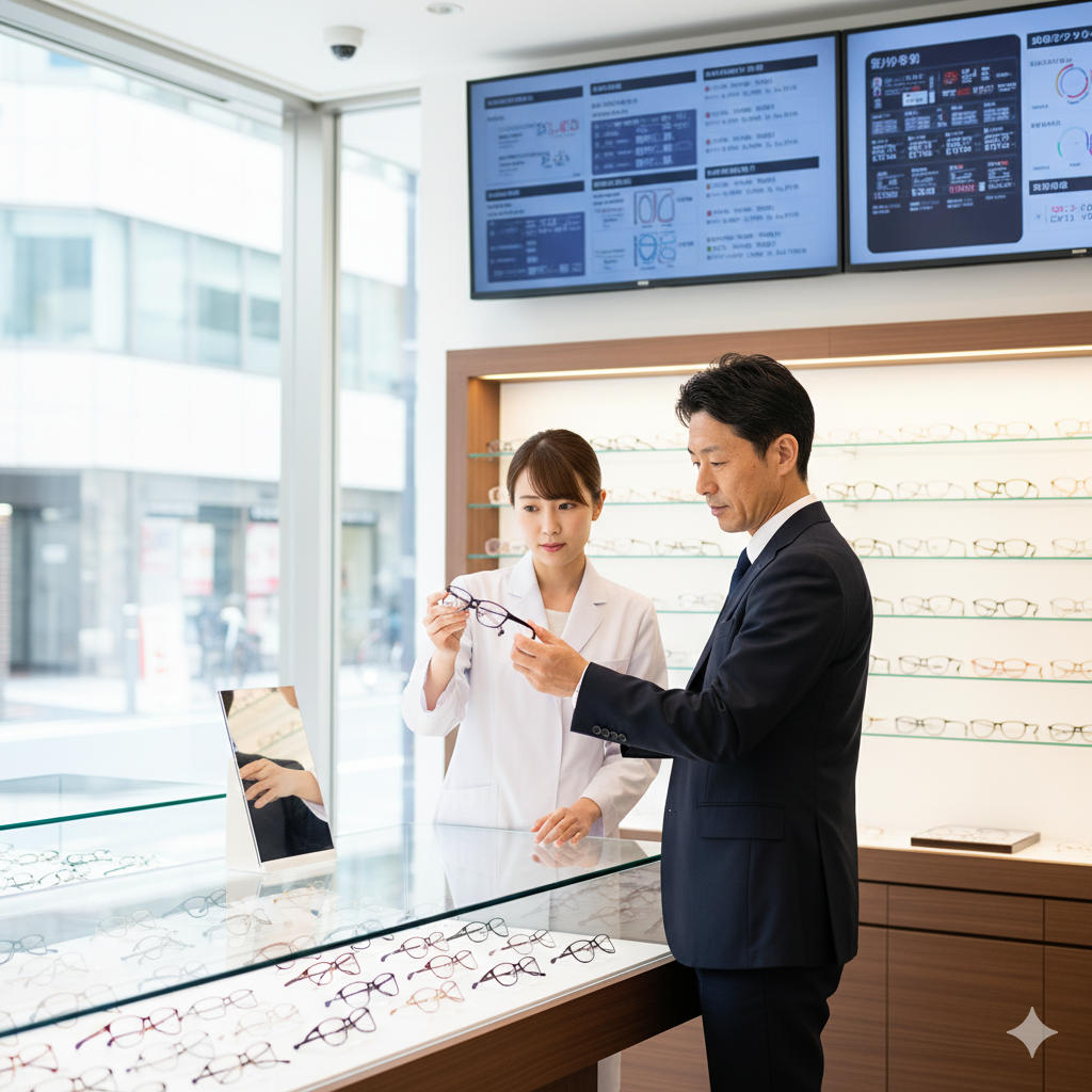 - 精密な視力測定とレンズ選定:現在の視力を測定するだけでなく、ライフスタイルやメガネを使うシーン(運転、PC作業、読書など)をヒアリングし、数多くのレンズの中から最適なプランを提案してくれます。
