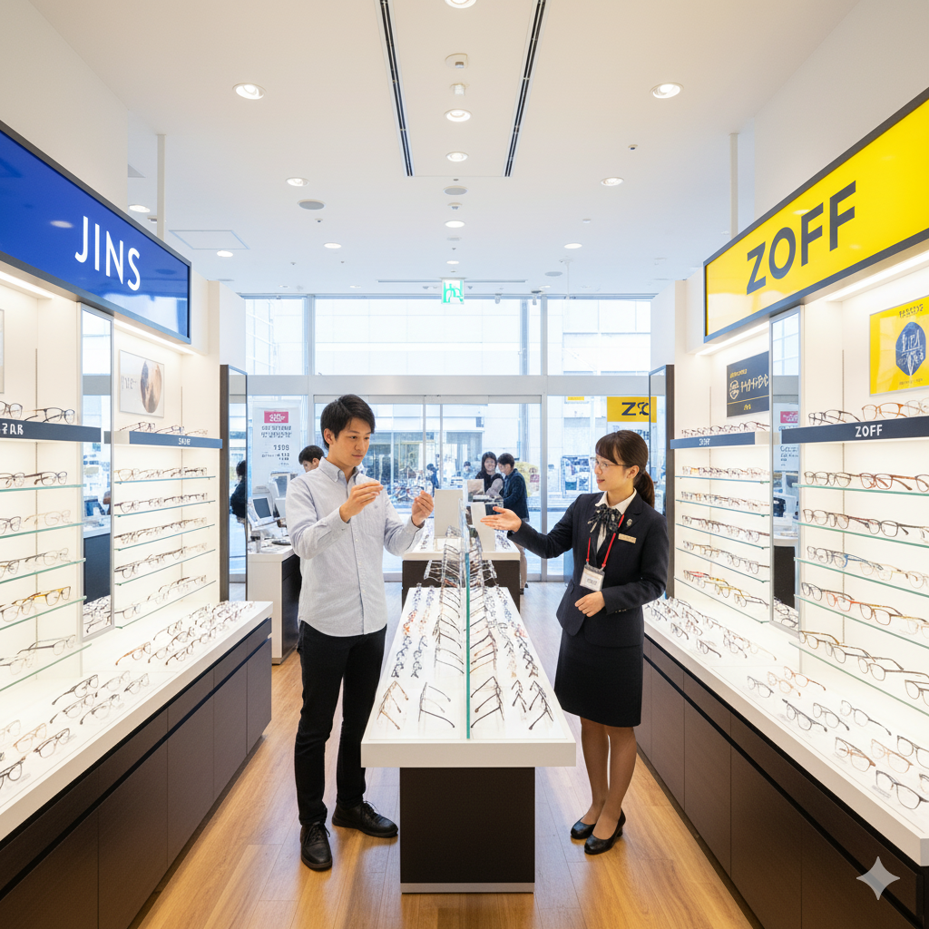 ファッション性の高いデザインで若い世代を中心に人気のJINSとZoffも、他社フレームの持ち込みにしっかりと対応しています。ただし、サービス内容や料金体系にはそれぞれ明確な特徴があります。