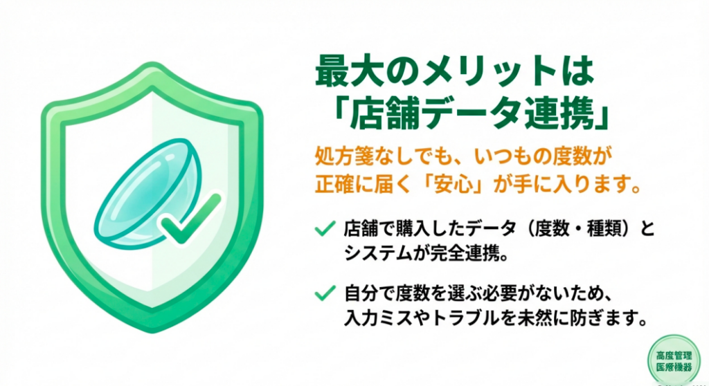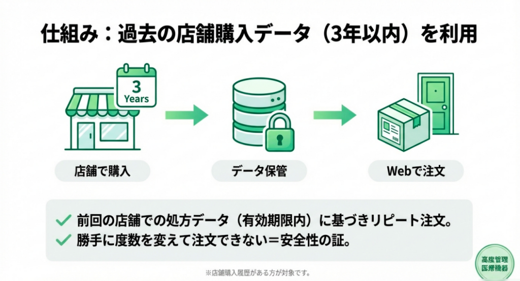 これは「前回の店舗での処方データ(有効期限内)」に基づいているからこそできる仕組みなんです。