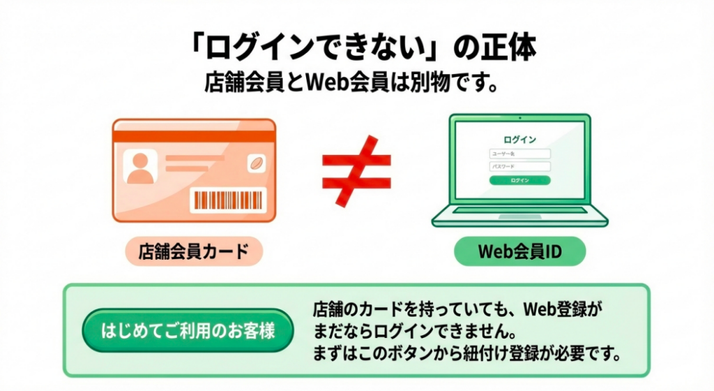 「店舗の会員カードは持っているし、いつも店で買っているから」といって、いきなりログインしようとしていませんか?