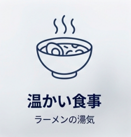 ラーメン店での食事、調理中の台所、冬の温泉施設など、強力な水蒸気が発生する場面では、クロスタイプでは被膜の厚みが足りない場合があります。