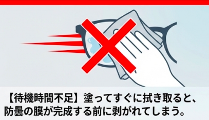 施工前には必ず水洗いでレンズを清潔にし、完全に乾燥させてから塗布しましょう。