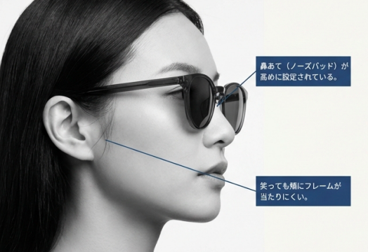 特にお気に入りの海外ブランドを買ったのに、鼻あてが低くてレンズが頬に当たったり、笑うとフレームが動いてしまったり…なんて経験、私もあります。