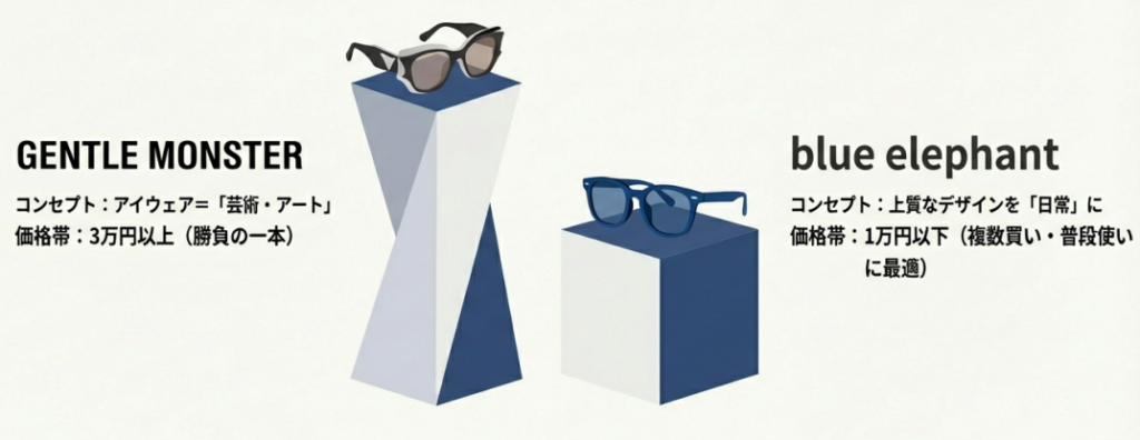 ジェントルモンスターが「アイウェアをアートとして捉える」ラグジュアリーブランドで、1本あたり3万円以上する価格帯なのに対し、