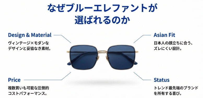韓国発のアイウェアブランド、blue elephantのサングラスは、その圧倒的なコストパフォーマンスとデザイン性で、今まさにMZ世代を中心に爆発的な人気を集めていますね。