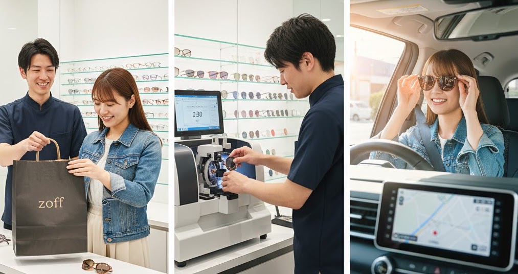 最も効果的な方法の一つが、ZoffやJINSに代表される大手メガネチェーン店を活用することです。