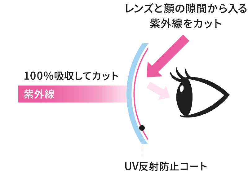 まず、この製品の最大の特長は、レンズの色がほぼ無色透明でありながら、眼に有害とされる紫外線を99.9%以上カットする高いUVカット機能を備えている点です。
